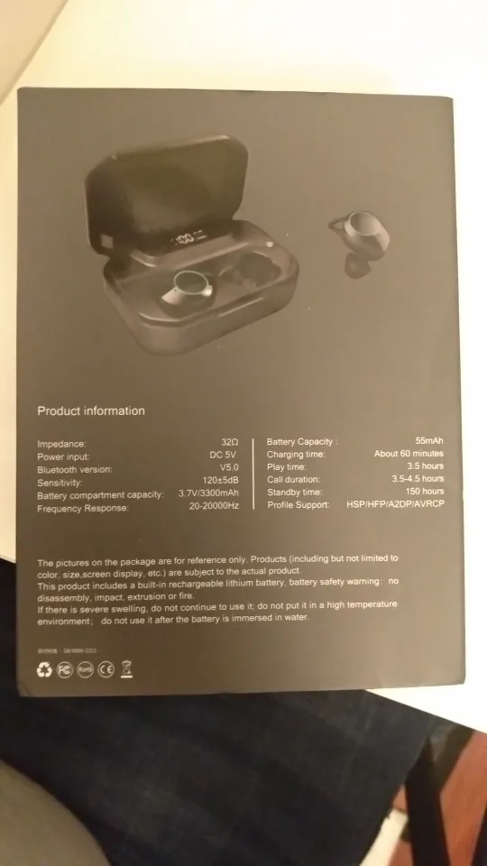 Specifications: 1.Bluetooth version: 5.0 (original / pau1603) 2.Headphone battery capacity: 60 mAh 3.Bottom battery capacity: 3000 mAh 4.Charging time: about 60 minutes...